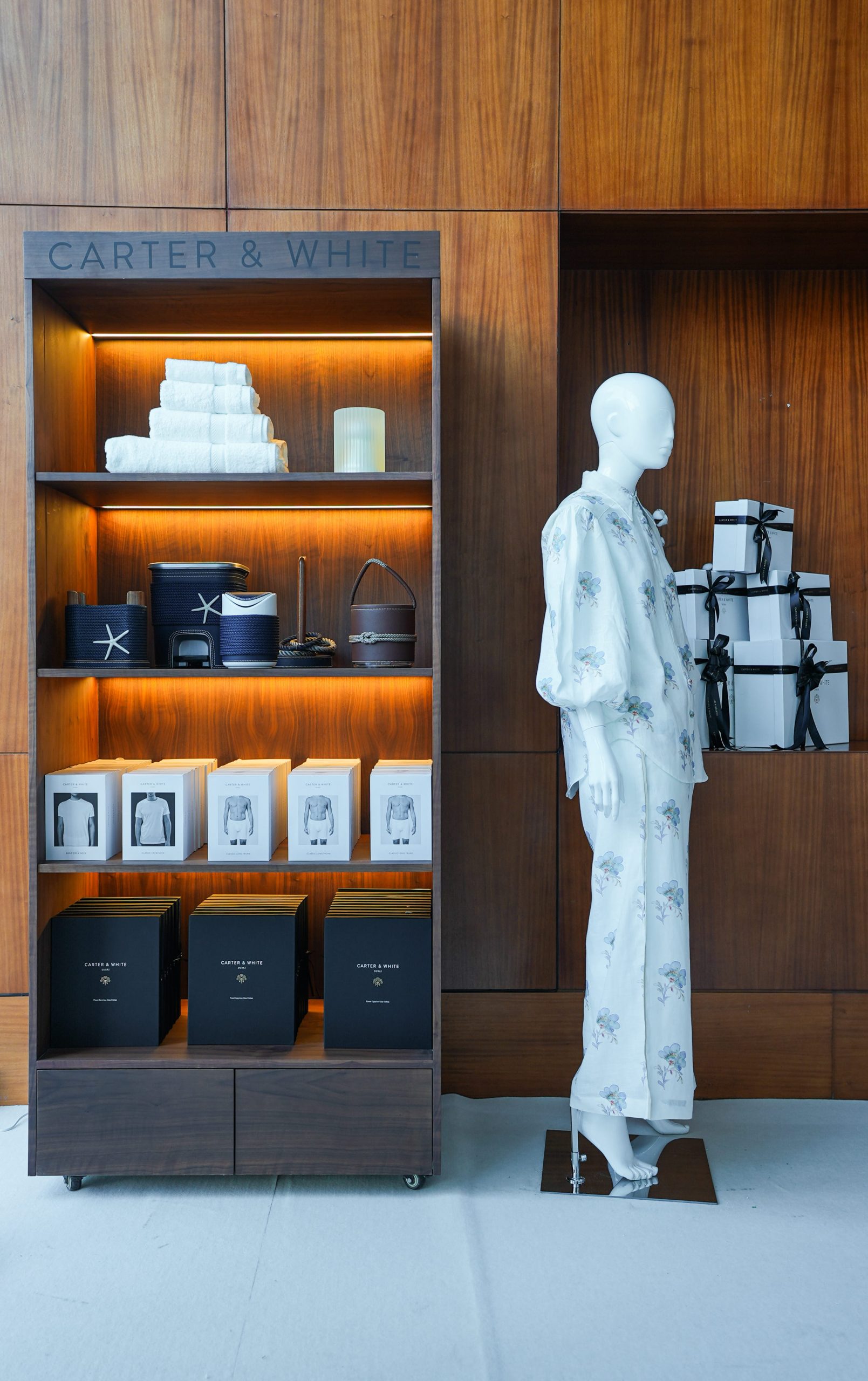 S3T Koncepts executed a premium retail interior fit-out for Carter & White at The H Hotel, Dubai, delivering a sophisticated shopping environment that reflects the brand’s refined identity. The project focused on creating a seamless balance between luxury aesthetics and functional retail planning, using high-quality finishes, bespoke joinery, and carefully curated design details. Every element was thoughtfully executed to enhance spatial flow, product visibility, and customer experience. Through precise craftsmanship, close coordination with on-site teams, and strict adherence to timelines, the final outcome is a polished, high-end retail space that embodies timeless elegance and reinforces the Carter & White brand presence within a luxury hospitality setting.