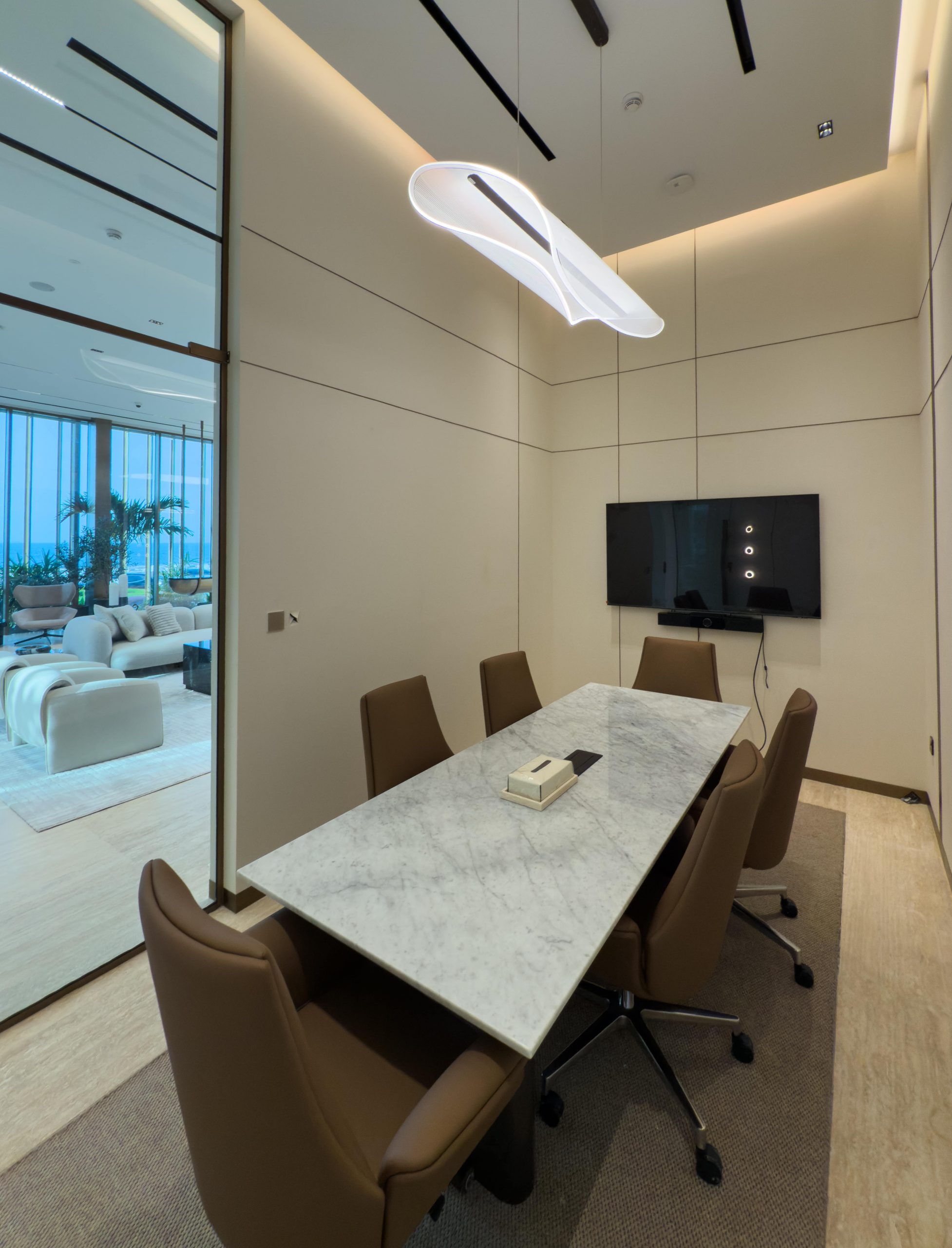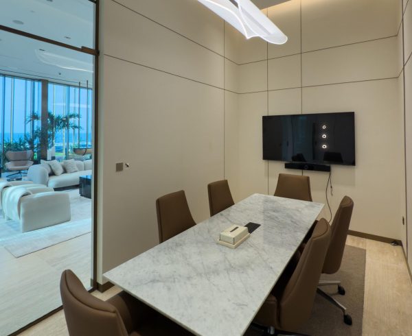 This Omniyat Arena Office interior fit-out project reimagines the workspace into a sleek, functional setting that inspires productivity. With a harmonious blend of clean lines, high-quality finishes, and a smartly planned layout, it delivers the perfect balance of style and performance