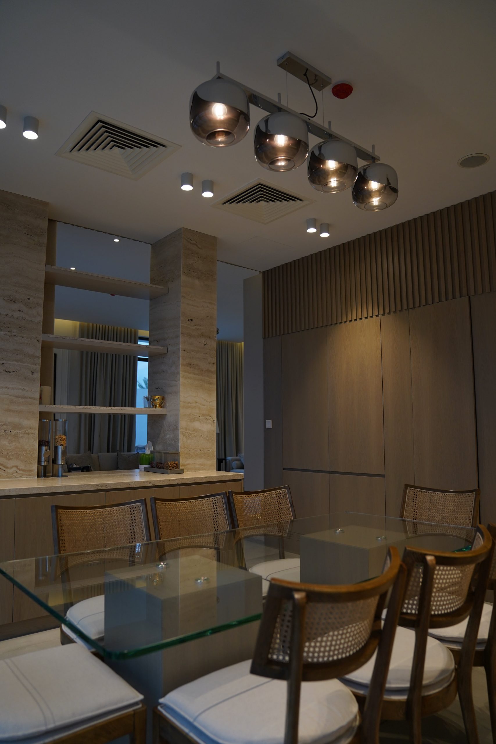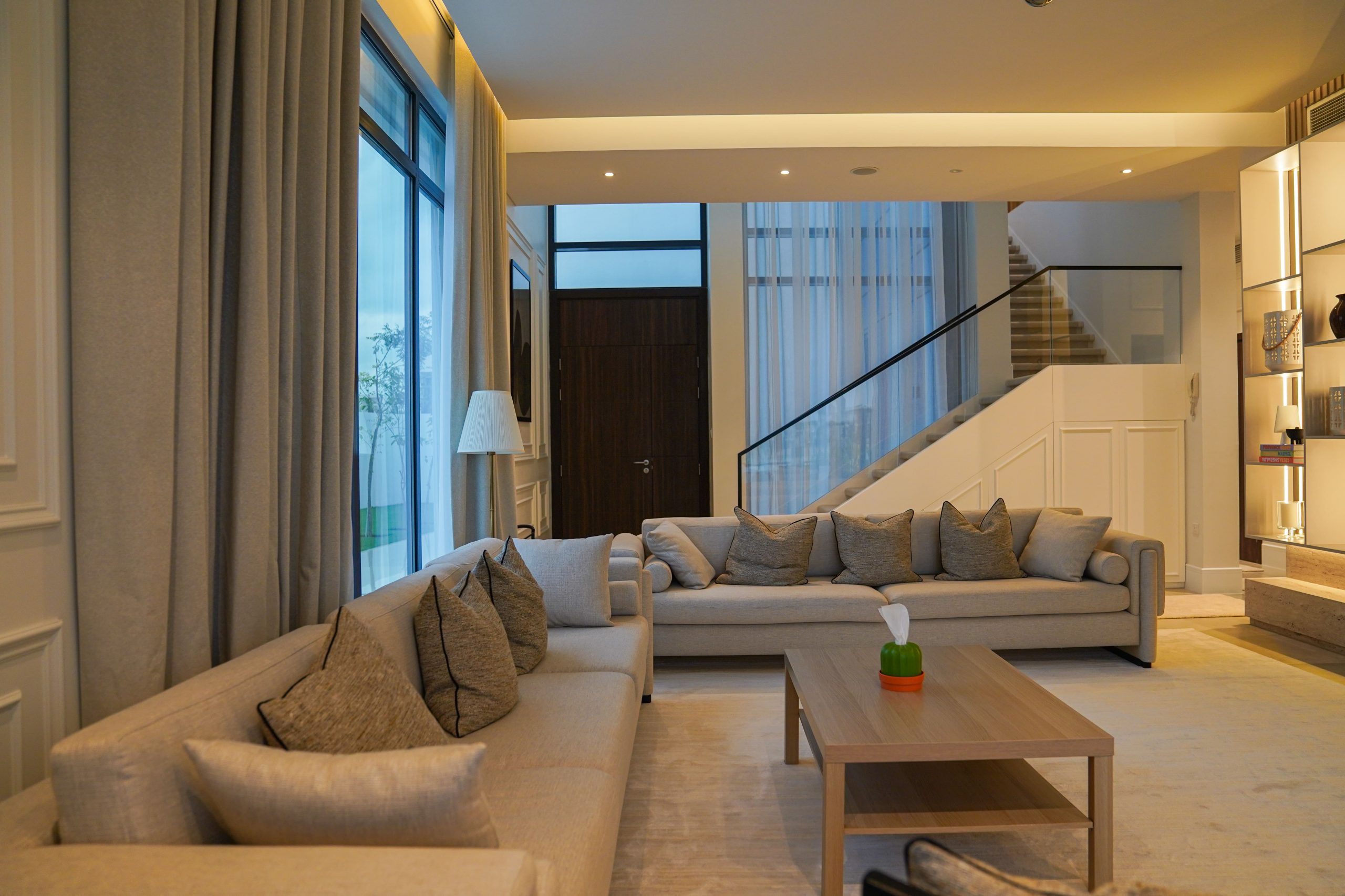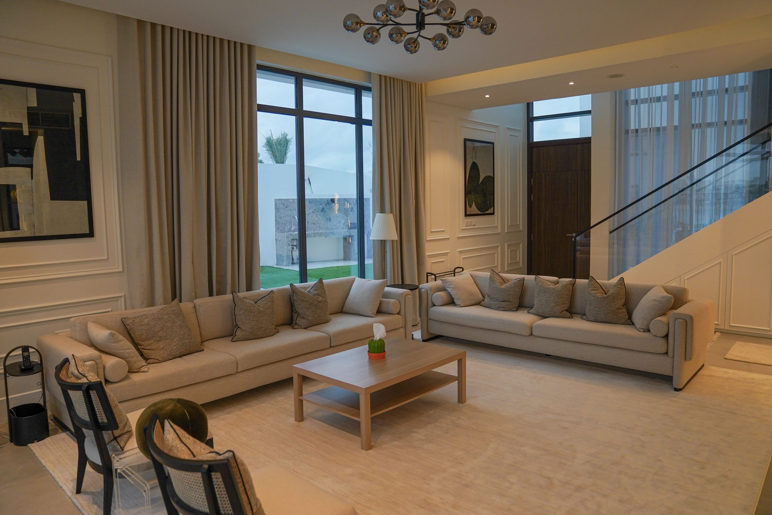 Brief – The contemporary house interior design for this villa is characterized by defining features and textures and attention to every detail. The overall palette of the house is neutral, which brings out the sophisticated furniture.