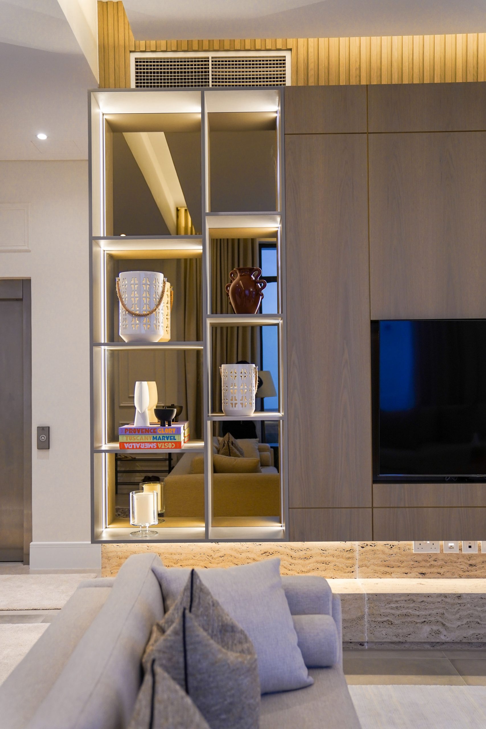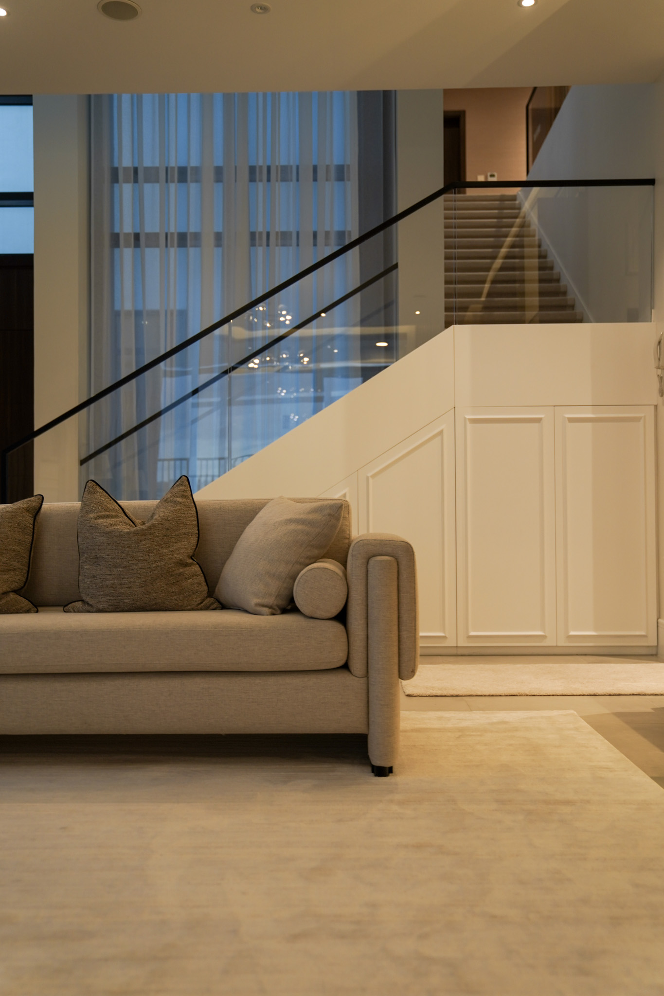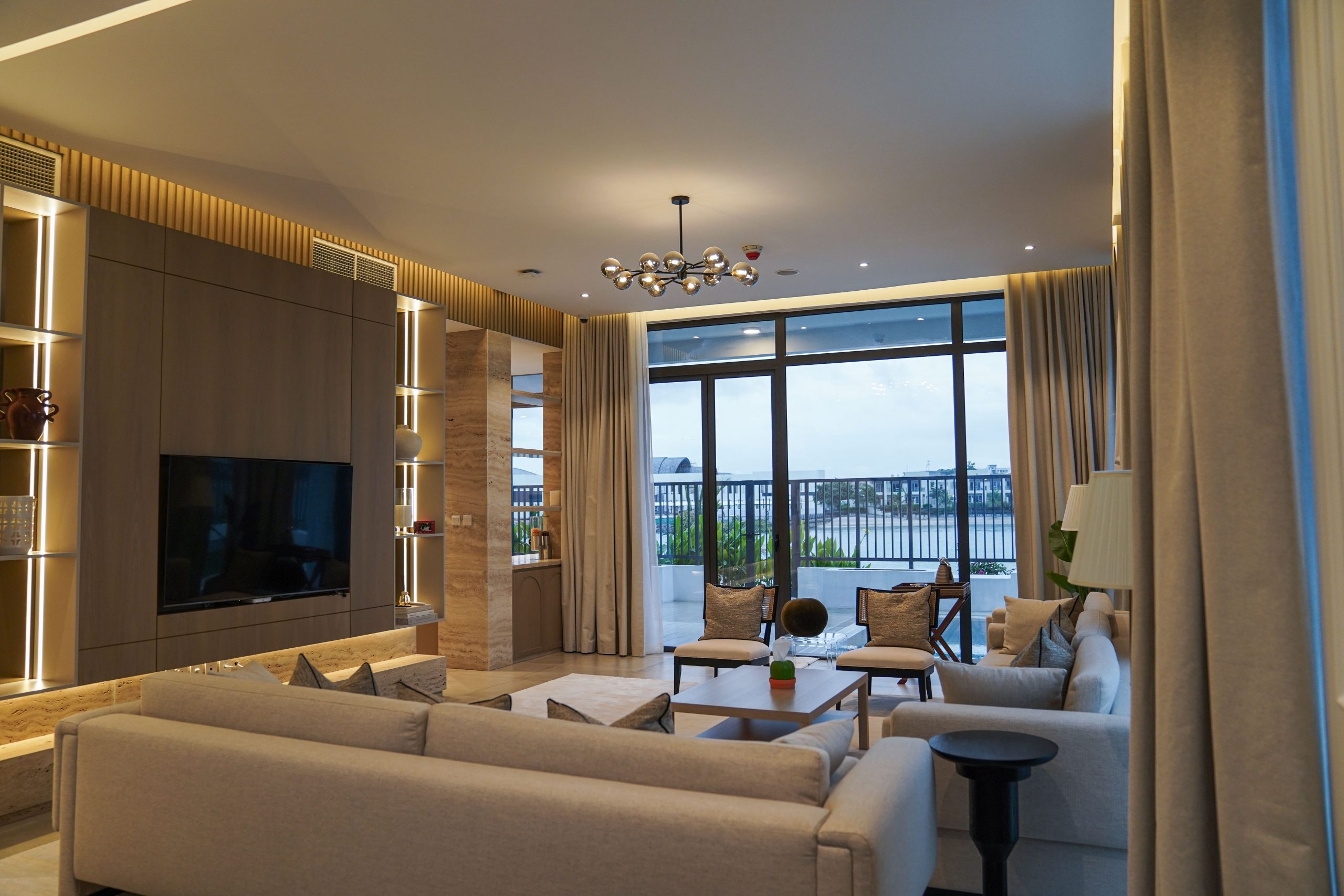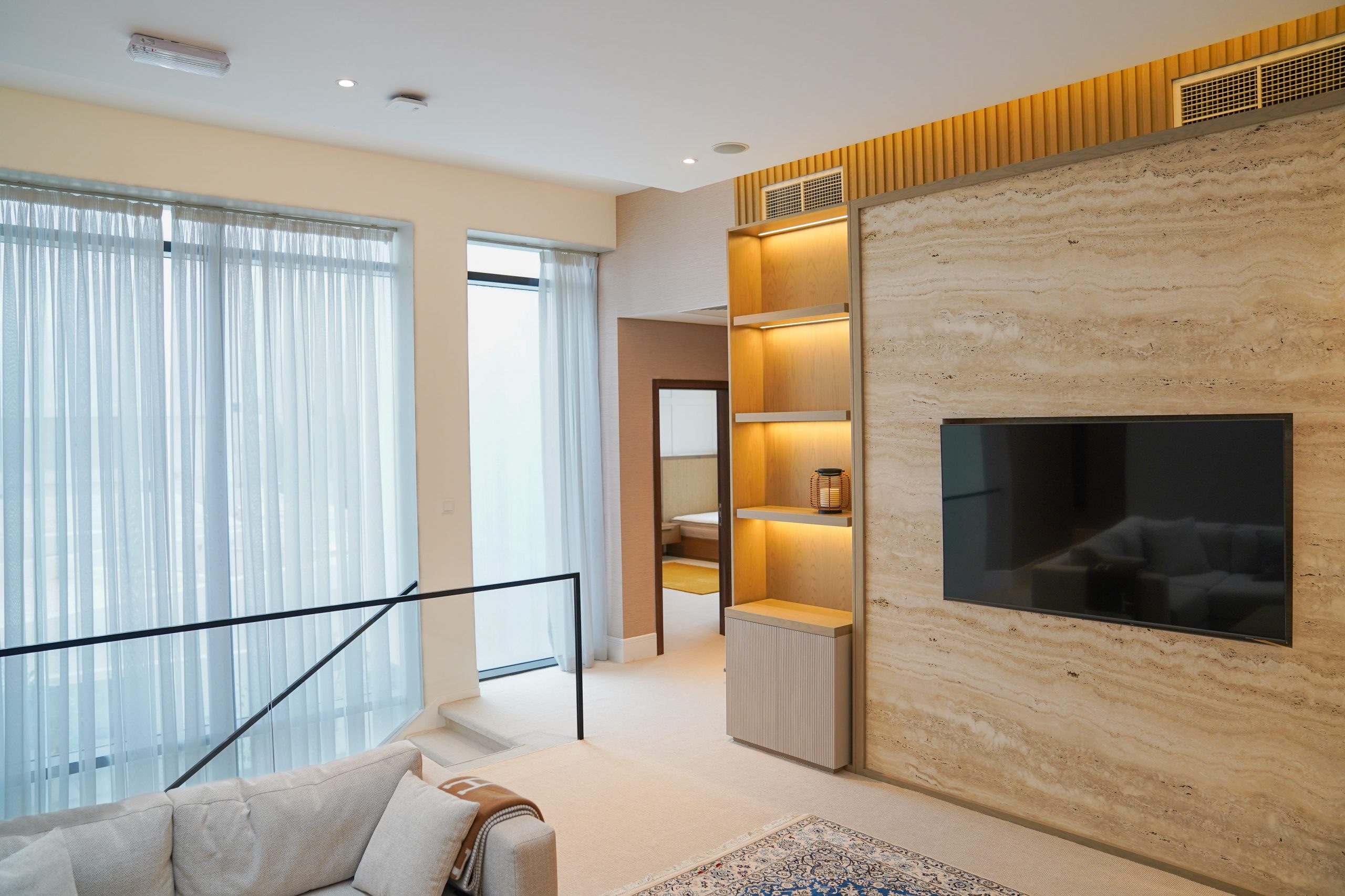 Brief – The contemporary house interior design for this villa is characterized by defining features and textures and attention to every detail. The overall palette of the house is neutral, which brings out the sophisticated furniture.